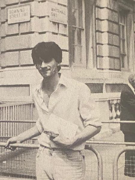 Roberto Fiore, footloose in London, posing in Downing St, September 1983